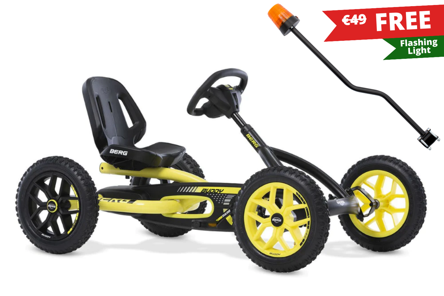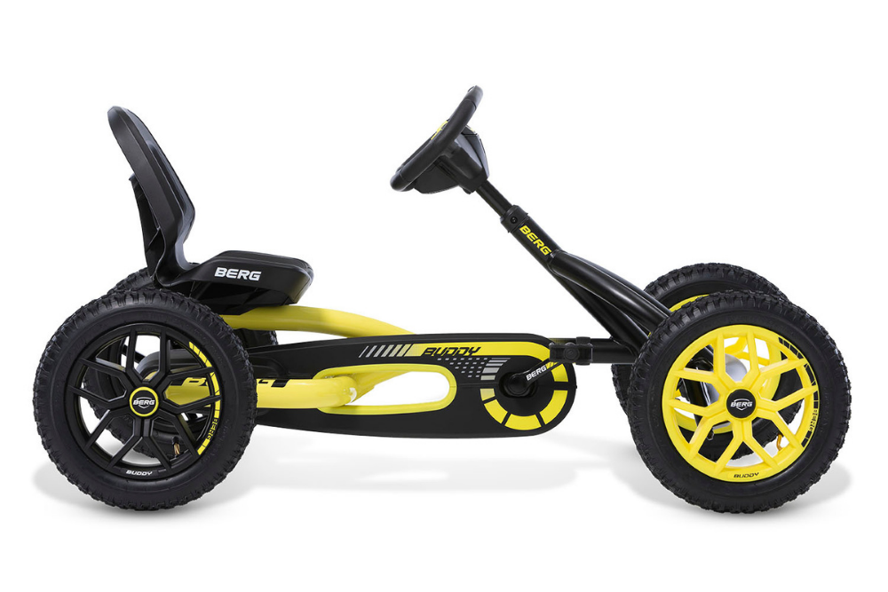 One of Berg's best-loved models, the Buddy, has been through a major upgrade. This model has been completely retuned and the design has been thoroughly worked over: beautiful rims and new tyres. A bucket seat which is even more comfortable, and great handlebars with maximum grip, all set up ready for the BERG Soundbox. In brief, with the Buddy you drive tough and are definitely the fastest on the street. One of the Buddy’s best features is the BFR system. Suppose you are going very fast, you can suddenly brake using your pedals and start going backwards immediately. This makes your driving style fast, flexible and ever safe. At any rate, the direct drive makes pedalling light and smooth.