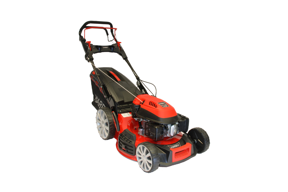 A massive 65-litre fabric catcher deals with the grass on this 21"/53cm self-propelled machine.