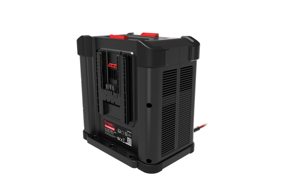 KRESS Commercial chargers provide the industry's fastest charge times! The KRESS KAC840 30A dual port charger can charge the KRESS 60v 4Ah CyberPack in 12 minutes and the KRESS 60v 11Ah CyberPack in only 25 minutes!