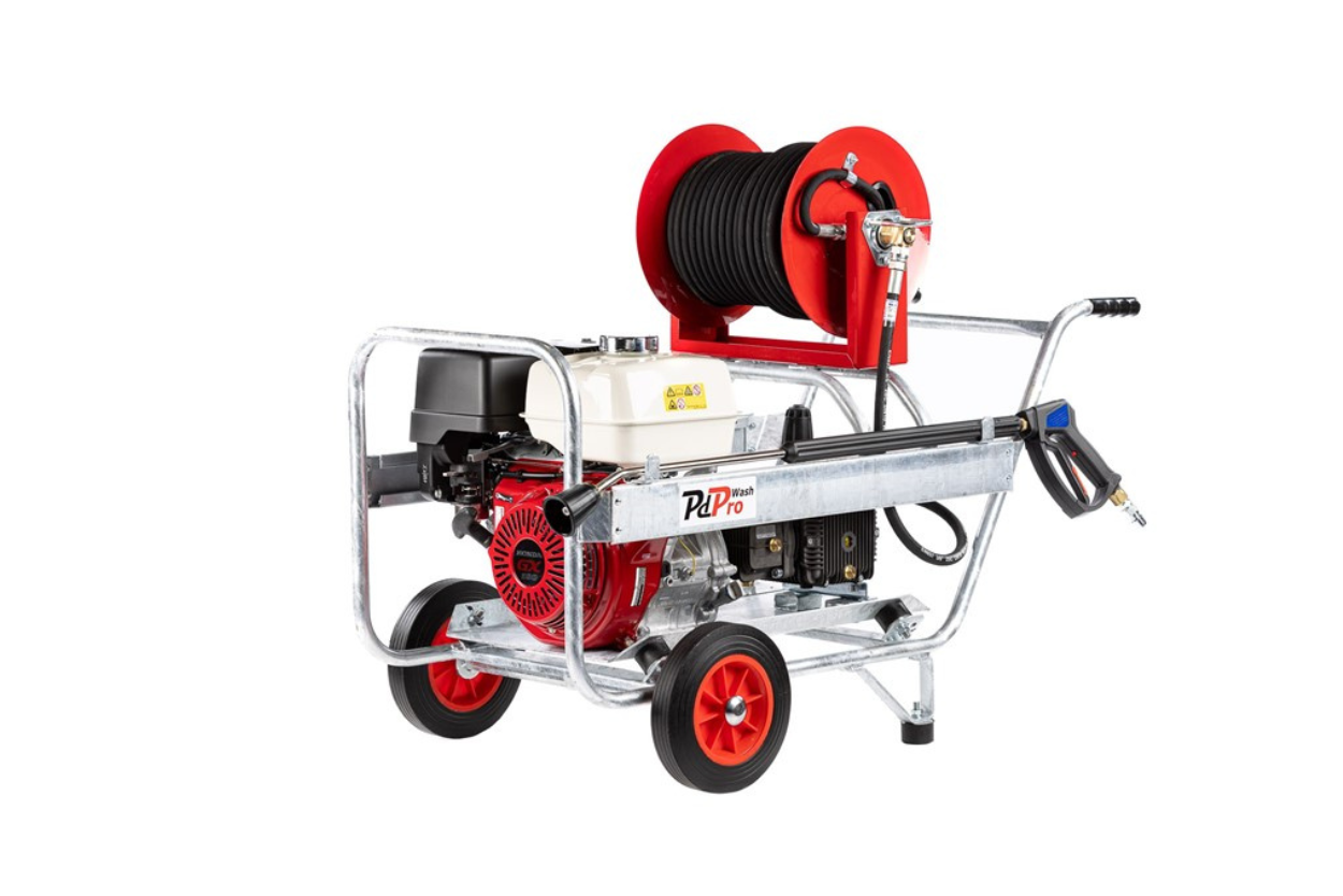 PdPro 3000psi 21L/min Honda engine pressure washer , with 40m hose reel and frame.
