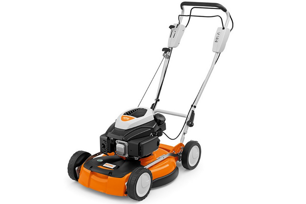 The STIHL RM 4 RV petrol lawn mower is a mulching specialist. The specially shaped mulching blade shreds the grass step-by-step into fine particles, which then fall back onto the turf. In this way, the lawn is supplied with important nutrients. With this model, you choose an effective working machine, which ensures first-class results on large areas with its 53 cm cutting width. This mulching mower features Vario self-propulsion for comfortable working. The engine speed of the powerful engine always remains stable, even if you change the propulsion speed. The RM 4 RV combines design with comfort equipment features. The anti-vibration elements ensure effort-saving smooth running during mowing and provide for better machine guidance during lengthy periods of work. The foldable handlebar and the QuickFix clamping device enables effortless and space-saving transport. And thanks to the five-setting cutting height adjustment of the petrol lawn mower, you are certain to achieve a perfectly cut lawn. During mulching and mowing, you can always be sure to obtain precise results and to provide your lawn with an optimal basis for new growth.